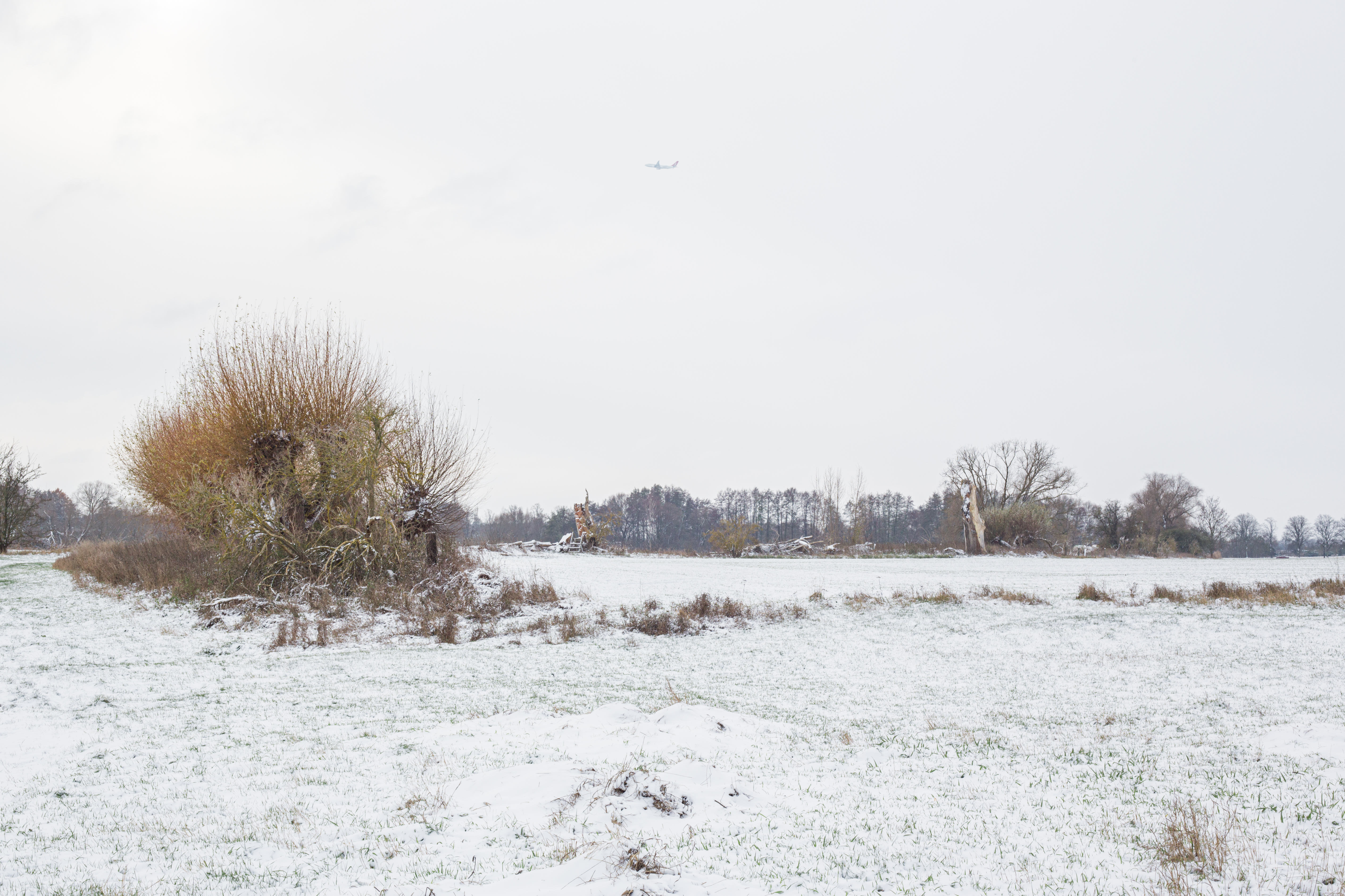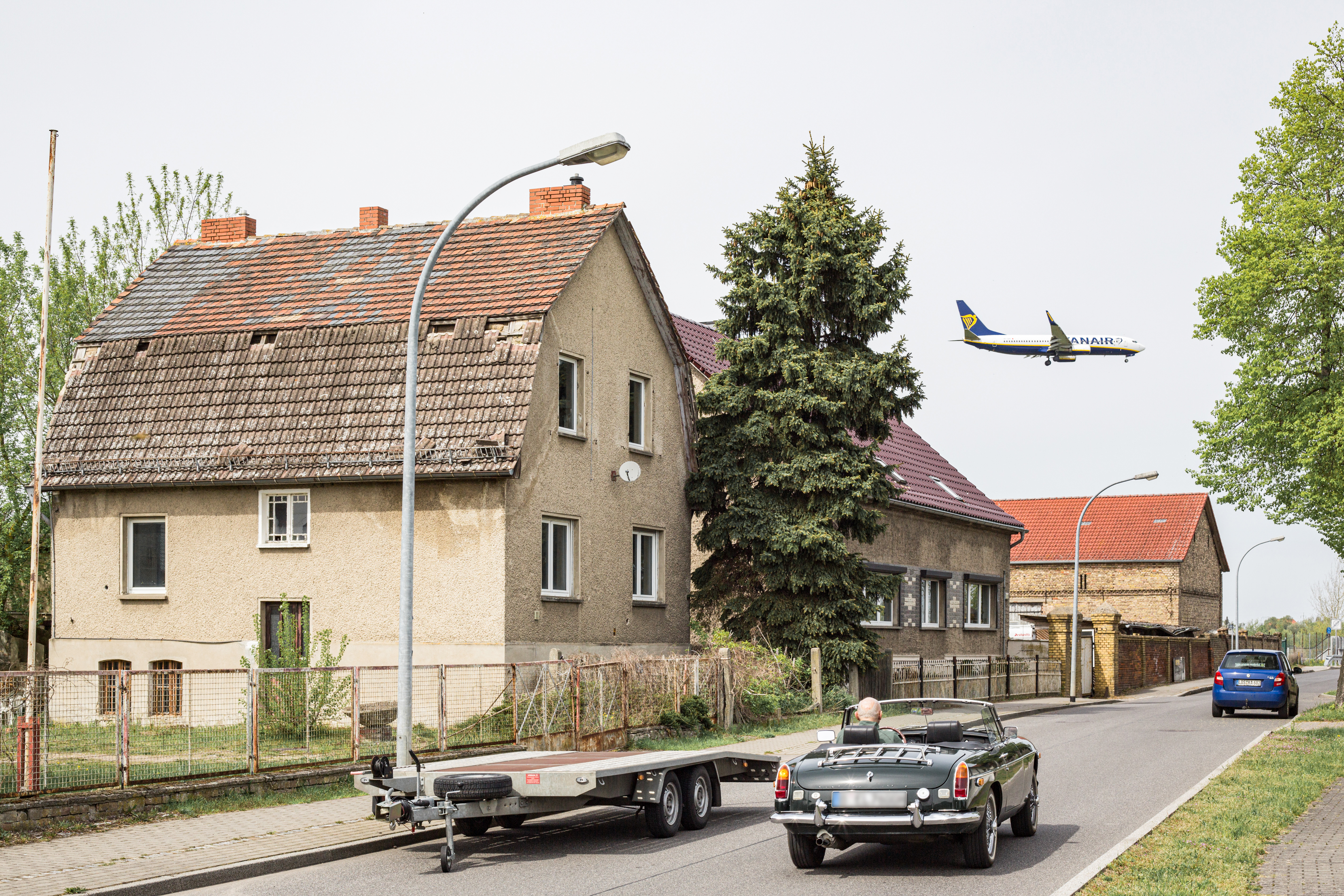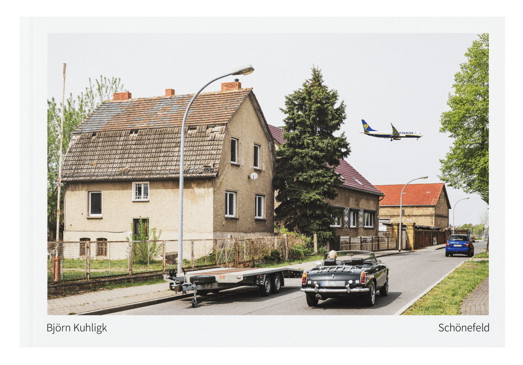Die Gemeinde Schönefeld, die südöstlich an Berlin grenzt, ist bekannt durch den Großflughafen BER. Es ist der Ort, an dem man abfliegt und landet. Doch er ist weitaus mehr als das: Hier prallen auf den Jungmoränenplatten des Berliner Urstromtals auf 82 Quadratkilometern landwirtschaftliche und alte dörfliche Strukturen auf das Gelände des Flughafens, auf Lagerhallen und Warenverkehr, auf neugeschaffene Wohngebiete und eine Infrastruktur, die aus Flughafengebäuden, Betonwerken und Discountern besteht. Lebten in der Gemeinde im Jahr 2000 noch fast 3000 Menschen, sind es mittlerweile annähernd 20.000 gemeldete Einwohner. Neben alten Ortskernen wurden Straßenzüge gebaut, gesäumt von zweigeschossigen Häusern, die sich allesamt gleichen. Ein Dorf wurde abgerissen und die Anwohner umgesiedelt.